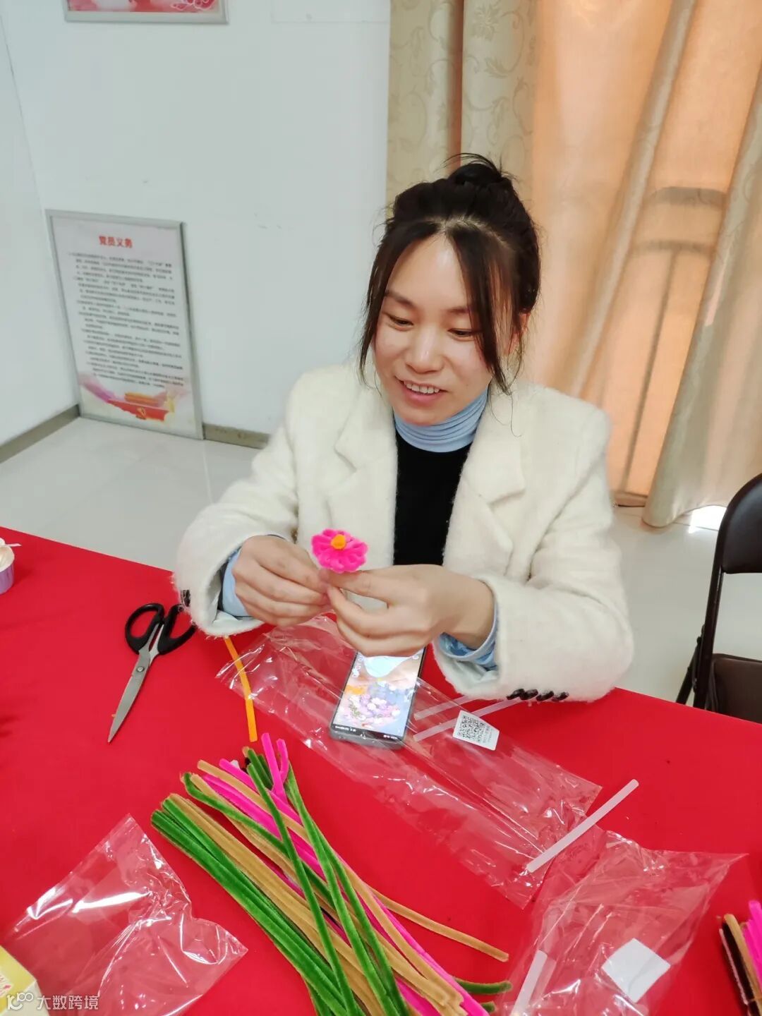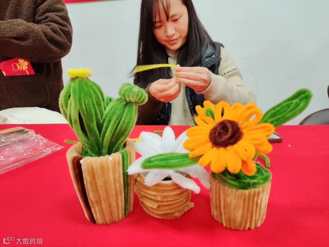 指尖流转间,扭扭棒逐渐蜕变为错落有致的花艺小品,既展现着现代女性的柔美与坚韧,又暗合职场巾帼刚柔并济的特质。当一盆盆独具匠心的作品惊艳亮相,欢声笑语中流淌着创作喜悦,盈盈笑靥里盛放着自信光芒。