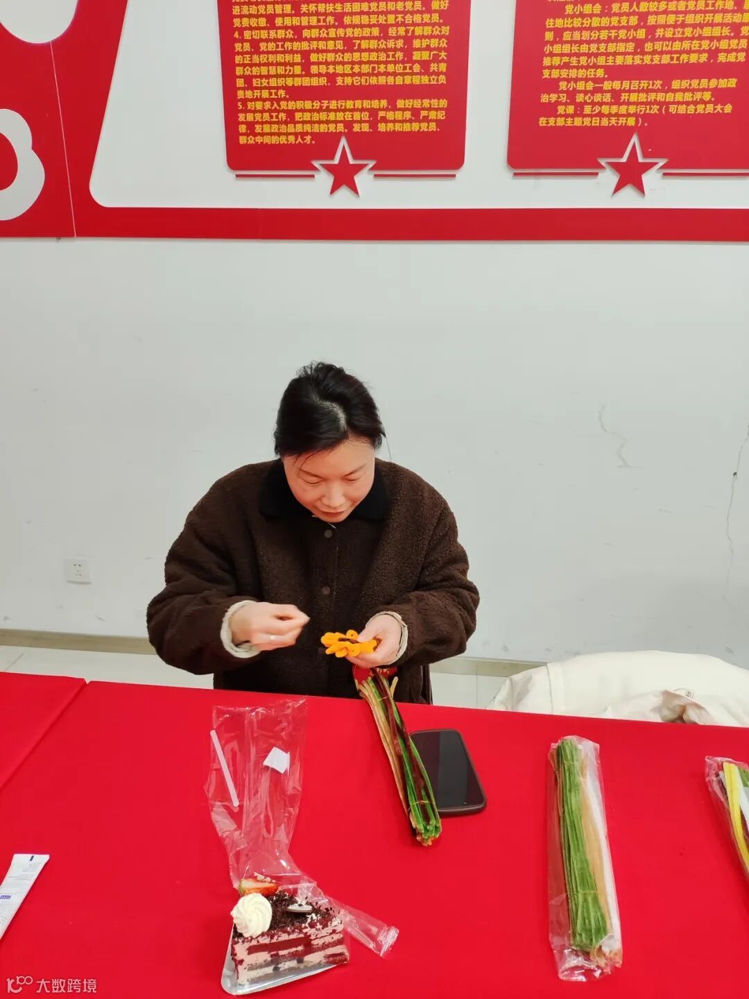 3月8日下午,活动在馥郁芬芳中拉开帷幕。公司不仅为每位女职工准备了暖心节日礼遇,更特别设置精致甜品台营造温馨氛围。活动现场,大家开启了扭扭棒花艺创作之旅,各色材料在匠心巧手中幻化成绚丽花枝——粉樱含羞、白兰清雅、雏菊烂漫,每一片花瓣的捻转都凝结着智慧巧思,每根枝条的造型都彰显着审美意趣。