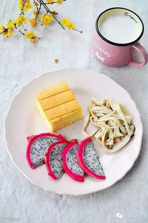 25、海绵蛋糕+椒盐杏鲍菇+火龙果+牛奶麦片