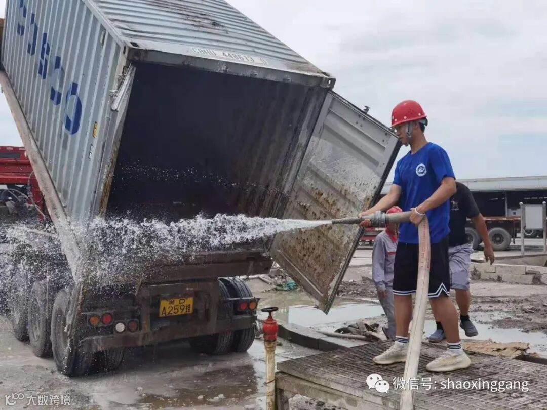 最后一站是港口生产部,部门人员带领他们熟悉生产部的工作场地,了解部门基本工作内容,还指导他们亲身参与了洗箱点的工作。调研小组对于忍受高温仍坚持在一线的工作人员们赞叹不已。