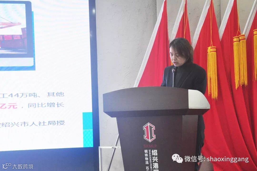 会议开始,绍兴港副总经理倪小娟代表公司高层做公司2019年度工作总结及2020年工作计划。倪总从绍兴港2019年运营情况、2019年工作亮点、不足之处等方面总结工作,同时强调了数字化、智能化和标准化的发展思路,并提出了优化部门流程,推行标准化管理等保障措施,希望公司各部门积极落实。