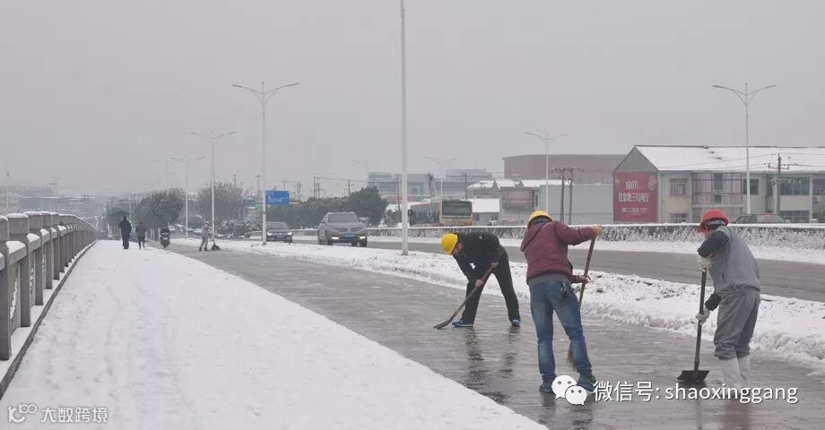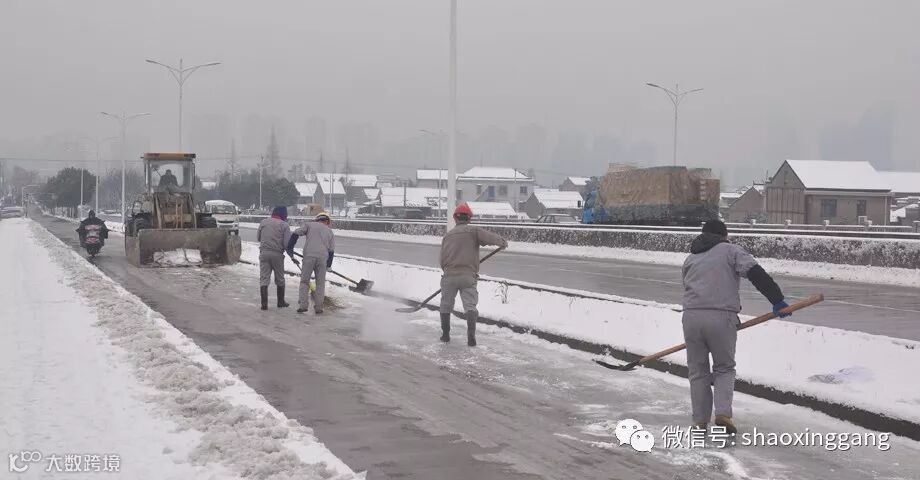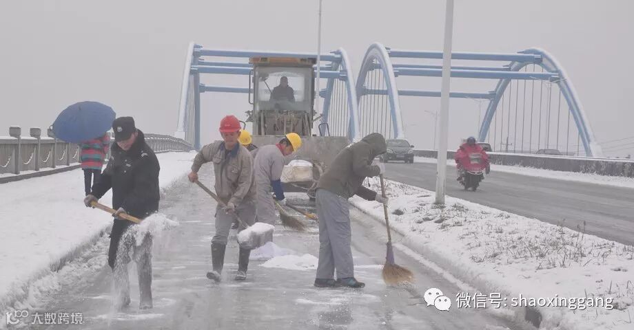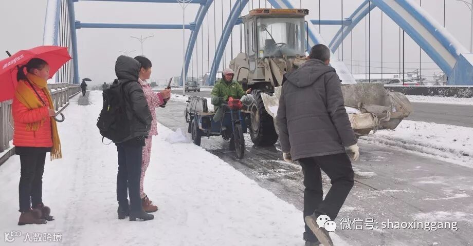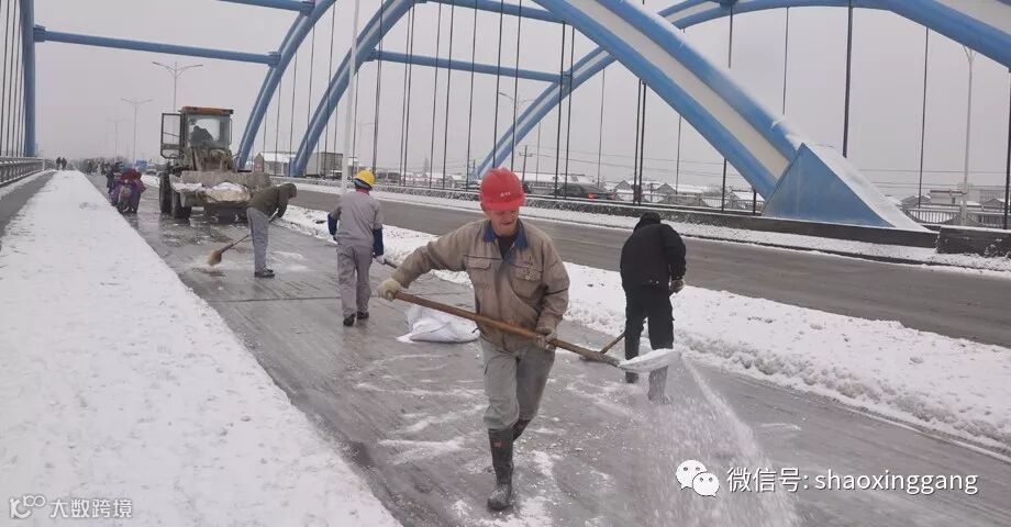 在绍兴港扫雪队的努力下,“破冰行动”取得成功,运河大桥非机动车道路面恢复正常通行,来往的行人纷纷点赞,称他们是今年冬天最温暖的人。