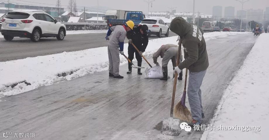 1月27日上午,绍兴越东路上的运河大桥两侧非机动车道积雪、积冰严重,为过往行人带来不便,不少电瓶车主都只能下车,步行推车前进。鉴于此,绍兴港生产部和保安部组成了义务扫雪队,开展了一次“破冰行动”。