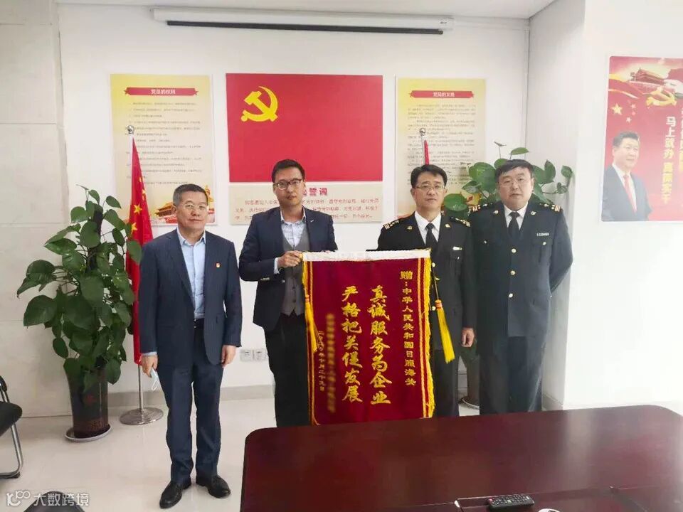 近日,在日照外代副总经理相丰和矿产品事业部经理苏平陪同下,某国外矿山企业相关业务领导来到日照海关,将一面写着“真诚服务为企业,严格把关促发展”的锦旗送到日照海关,感谢日照海关一直以来热情、优质、高效的服务。日照海关副关长王均山和综合业务科马洪波科长代表日照海关接受锦旗。