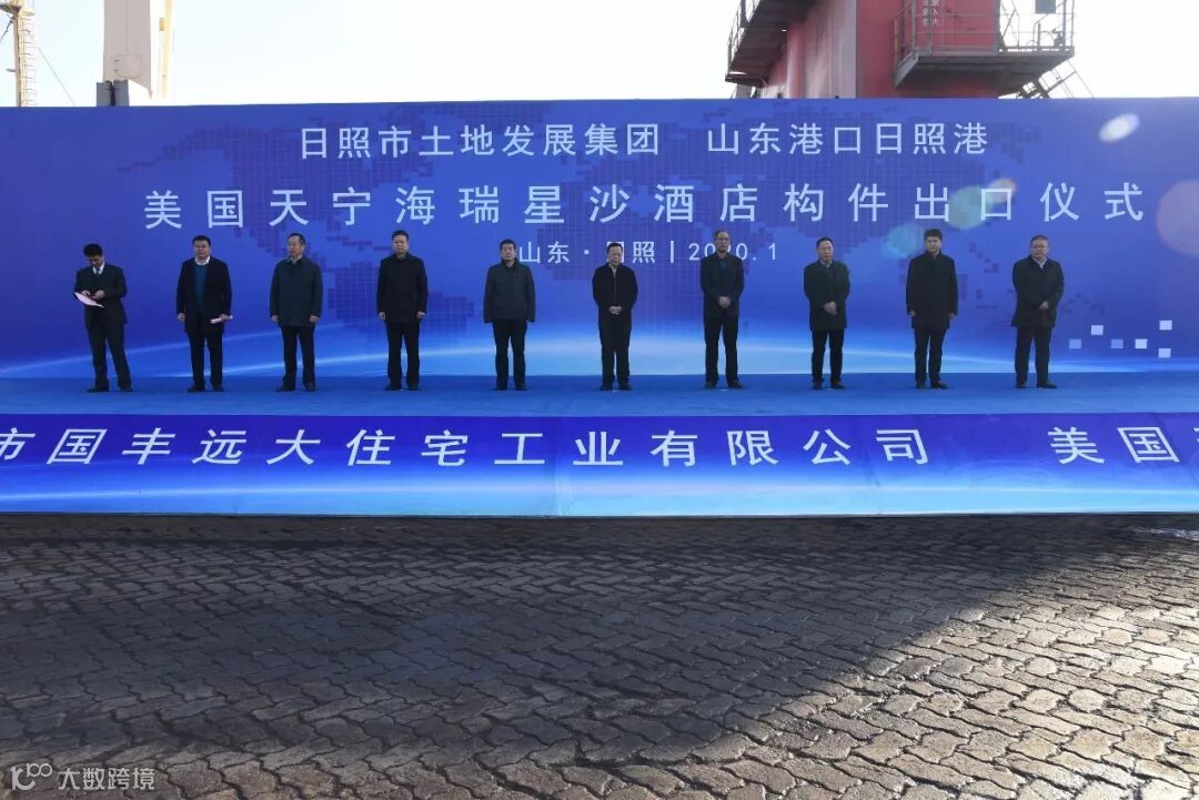 (通讯员:宋莉莉)1月10日上午9时,美国天宁海瑞星沙酒店构件出口仪式在日照港三公司西港区顺利举行,作为该货物的承运方和全程物流服务商,日照外代付志强总经理应邀参加了此次仪式。