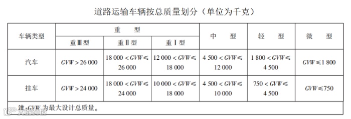 按总质量分,道路货物运输车辆可分成重型、中型、轻型和微型。从微型到重型,主要区别是车辆本身最大设计总重量(GVW)的不同。