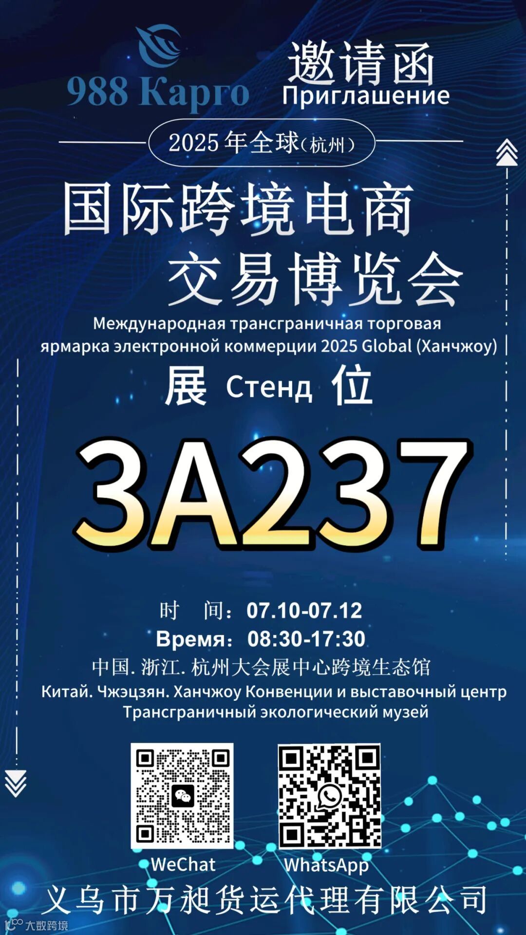 2025年7月10-12日杭州大会展中心,988 Карго与您不见不散