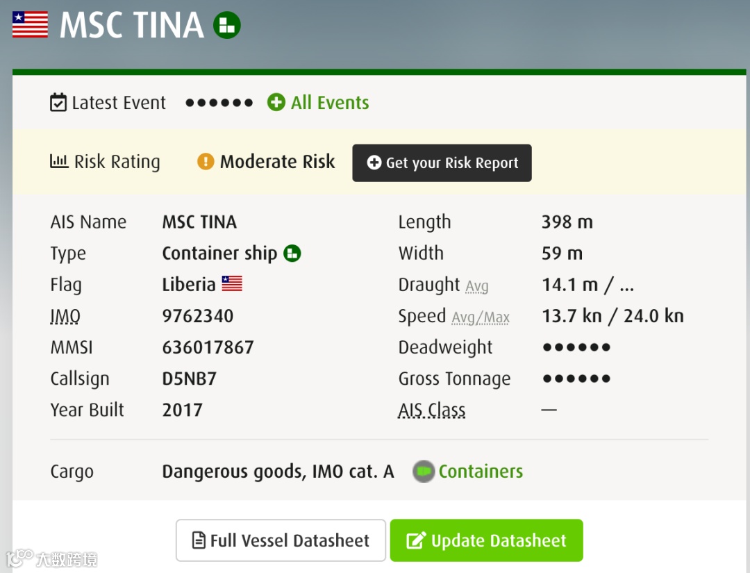 据了解,涉事集装箱船“MSC Tina”轮载箱量19170TEU,载重吨为200148吨,建于2017年,挂利比里亚旗。事发时,该船从土耳其的艾维亚普港(Evyap)抵达阿姆巴利港。