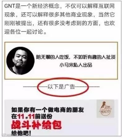 比如像小马宋那样,每次公众号打广告都预告说要打广告: