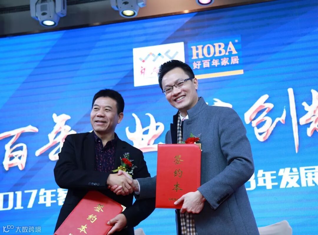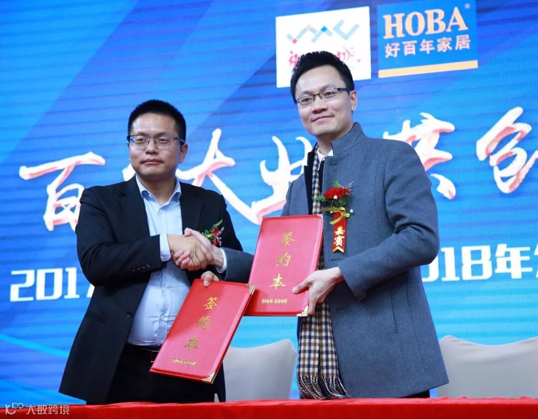 △(图右)好百年南宁项目总经理秦涛先生与(图左)南宁市韦永家具董事长韦心才签署入驻协议