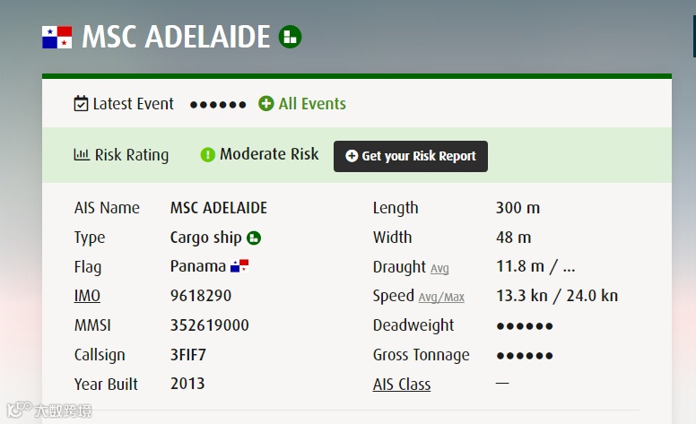 但已知信息显示,涉事船舶可能为“MSC ADELAIDE”轮,在南美西-地中海航线运营,曾靠泊巴西、西班牙和意大利的港口,当时从热那亚抵达焦亚陶罗。