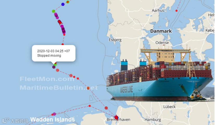 根据航行数据,这艘船于12月2日下午离开不来梅港,驶向瑞典哥德堡,途中速度忽然加快但数小时后速度降低至完全停止,直到12月3日下午恢复航行,但行驶缓慢。