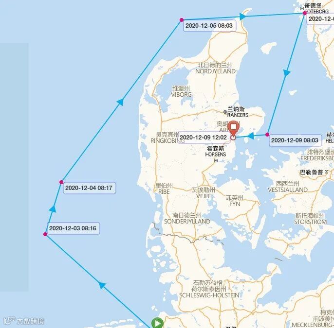 该轮近期航程,目前停在奥胡斯