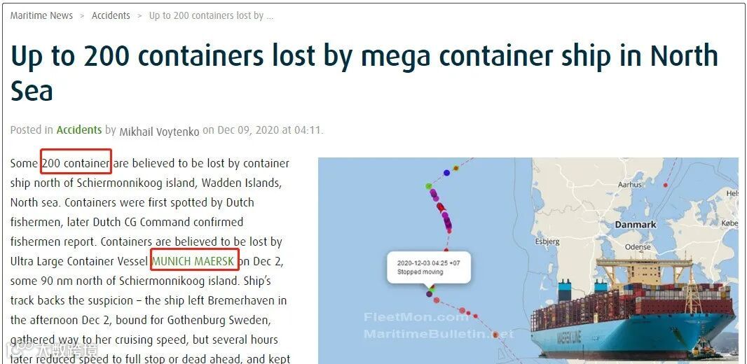 该船于12月5日停靠在哥德堡,于12月8日离开前往丹麦奥胡斯,目前依旧停靠在该港。目前关于事故原因,船只的身份和丢失集装箱的数量,尚未得到官方证实。