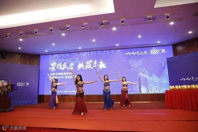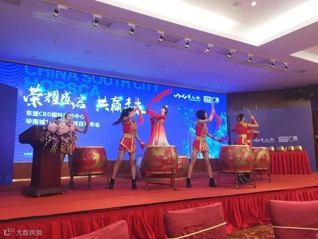 嘉宾在礼仪的指引下陆续入座,现场座无虚席,名副其实一场超高级盛会。舞蹈开场秀《盛世龙腾》,瞬时点燃了所有到场嘉宾的热情。华南城1668广场项目发布会正式开始!