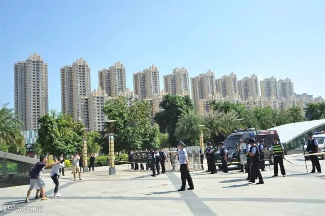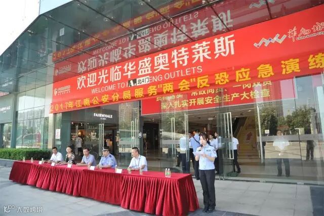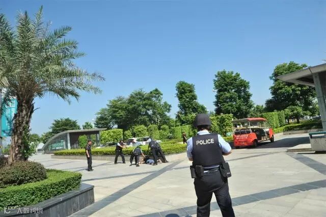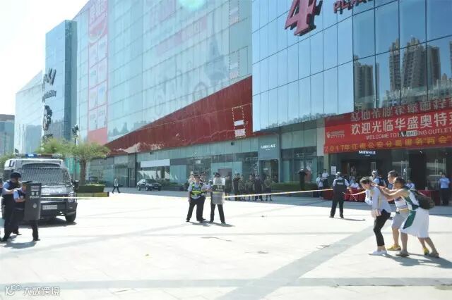 演练过程真实模拟了商场营业期间,两名手持凶器 “歹徒”进入了南宁华南城华盛奥特莱斯商场,突然劫持了一名女人质,商场工作人员拉响了反恐警报并及时向派出所报警,商场安全保卫人员快速反应,持防爆器材通过各种手段试图制止“歹徒”的极端行为,并且迅速组织群众从安全通道撤离现场。民警接警后迅速到达现场,按照应急演练预案和现场实际情况,特勤防暴抓捕组、外围警戒组等实施抓捕和救援行动,与商场安保人员合力控制局面,特勤防暴队员手持钢叉、盾牌等抓捕器械,从多处包围,用钢叉锁住“歹徒”,将其成功制服,并移交给闻讯赶到的公安民警。演练中,反恐安保人员在指挥中心的统一指挥下,闻警即动,分工明确,配合默契,合理运用处置战术,参战队员一丝不苟、服从命令、听从指挥、出色完成了应急处突演练,整个演练取得了预期的效果。