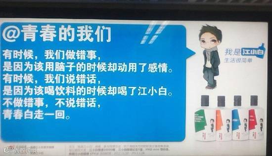 江小白,一款有自己卡通人物形象的小白酒,他说自己是“当下的热爱生活的文艺青年的代表”。