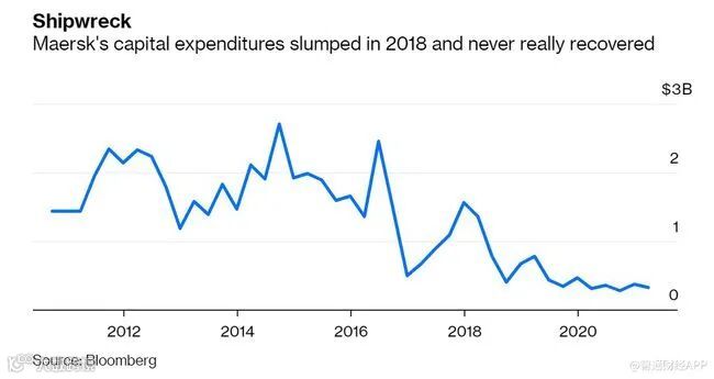 值得关注的时,货运业一直在削减投资,自2019年3月以来,马士基的资本投资仅为29亿美元,较2014年一个季度的投资不相上下,因此要解决航运问题,涉及的问题就很多了,包括建造新船舶、泊位和港口装载起重机才能解决。