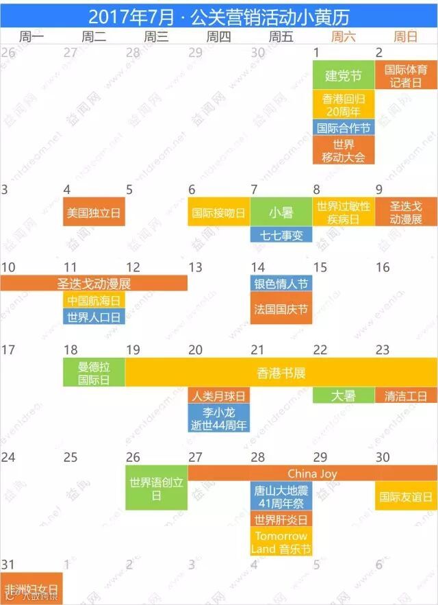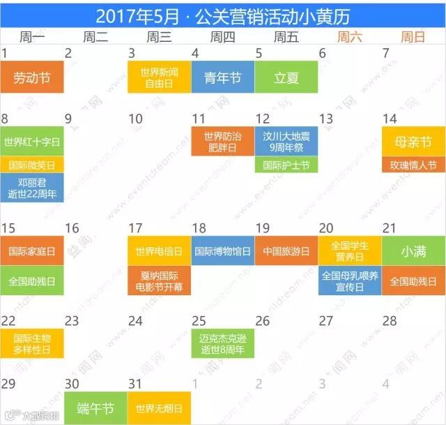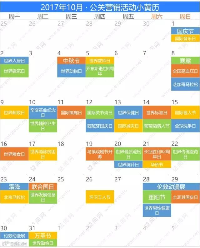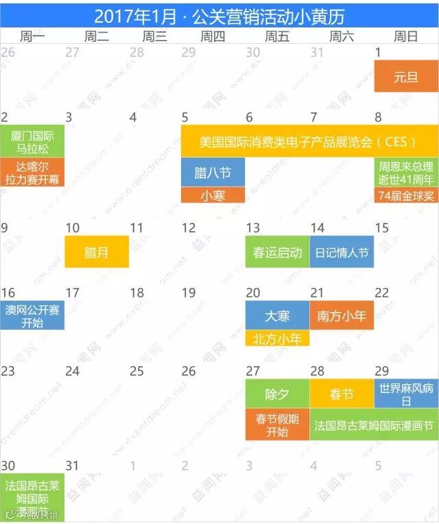 注:有些现代节日会变换日期,活动事件也有可能因为各种原因改期;有些官方时间尚未确定的活动未在表里……