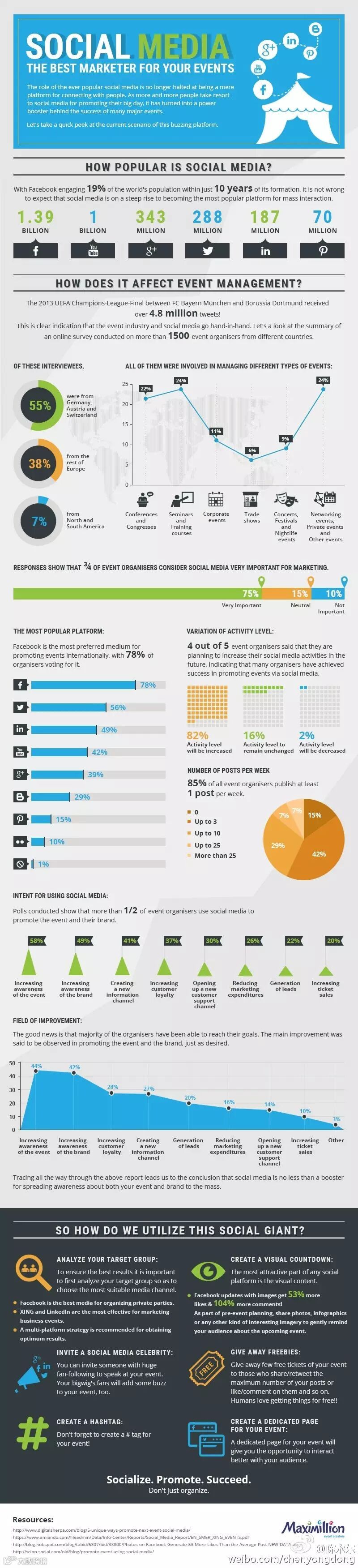 当今时代,在规划事件营销时,千万记住要充分利用社会化媒体。毕竟,社会化媒体可大大促进事件的互动与参与率。Maximillion的信息图为我们提示了这一切。仍然建议先看图,再看我的翻译。