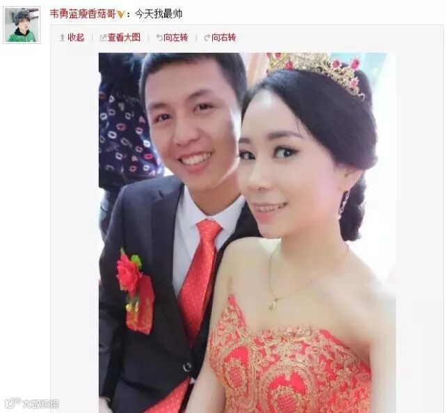 照片中,蓝瘦香菇哥笑容满面,其娇妻肤白貌美。对此,不少网友纷纷送出祝福,也有网友还模仿香菇哥的广西口音留言,“蓝瘦香菇哥结分(婚)了。”