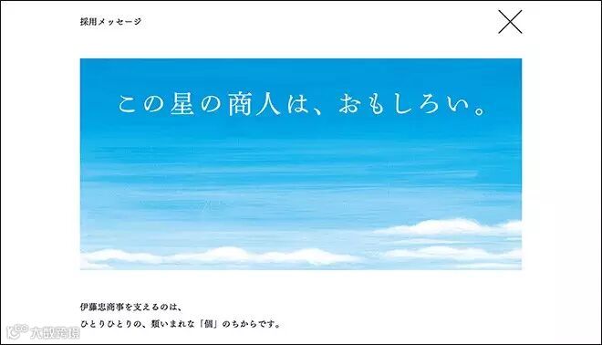 和前面 NTT DOCOMO 完全相反的视角,给商人、商事赋予了无上的意义。吸引新人加入这家世界上著名的综合贸易公司。