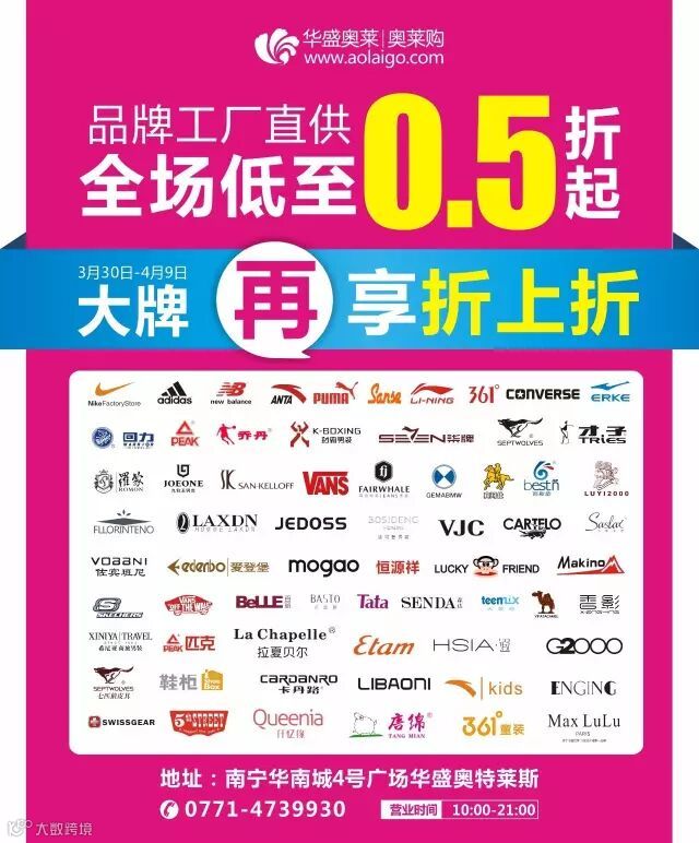 地址:南宁华南城4号馆·华盛奥莱1F 时尚馆