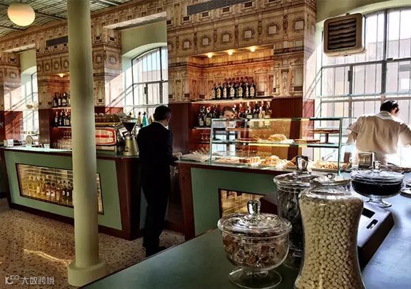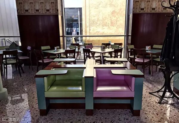 如果你也喜欢《布达佩斯大饭店》的设计,不妨来到米兰的Bar Luce。这是Prada和《布达佩斯大饭店》导演 Wes Anderson 联手打造的咖啡馆:粉蓝的座椅是不掩藏的少女心,色彩绚丽的甜点柜台如童话般美好,古老的弹珠游戏桌,精美的墙纸,都让这里充满了复古的时尚感,而洗手间则是彻底的未来感,每一个细节都美的简直像是电影布景,但Bar Luce的确是为真实生活而设的咖啡馆,导演Wes甚至会在这里悠闲地耗上一下午钻研剧本。