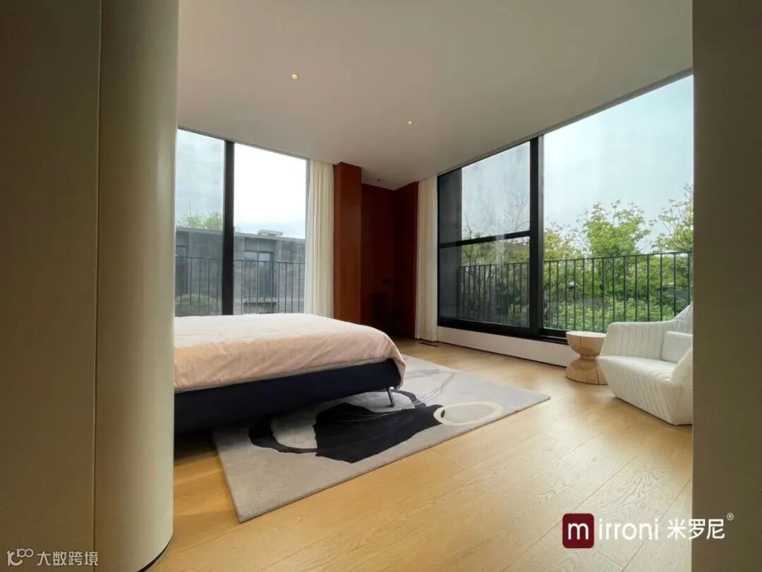 室外的空间属于白色与绿色,室外空间的色彩也在室内得到了延续,低饱和的色彩和木质地板,是属于第二居所的轻松、不受拘束的居所氛围。自然毗邻而居,是一场时间与自然对话的过程,更是诗意栖居最好的理解。
