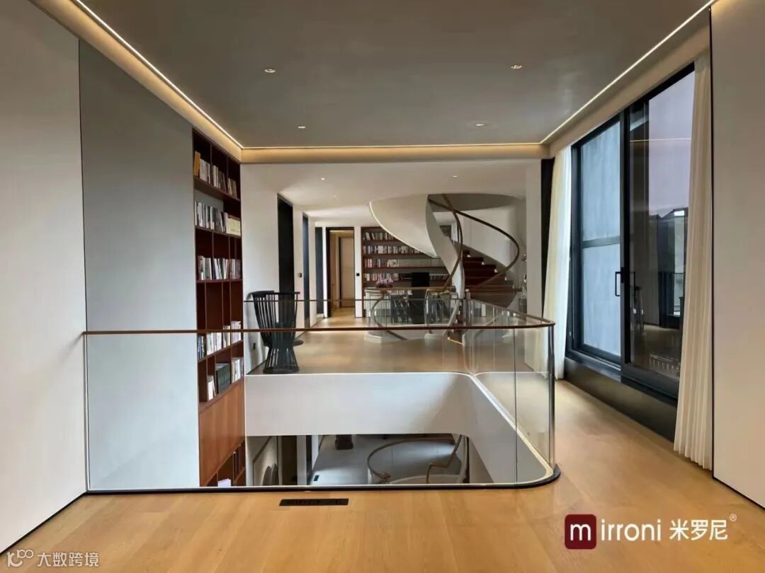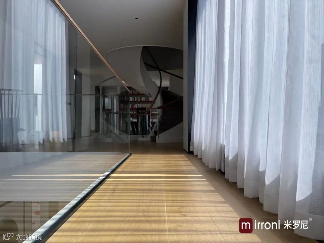 精致楼梯回旋的转折,是一个空间最为精细的角落,墙壁内凹的隐形踢脚线,使现代极简风格的品质达到极致。米罗尼地板超强的稳定性,不仅仅可以全屋通铺,收缩膨胀系数极小,与石材、地砖等无缝拼接,不需要任何收口条,整个空间的完美衔接。