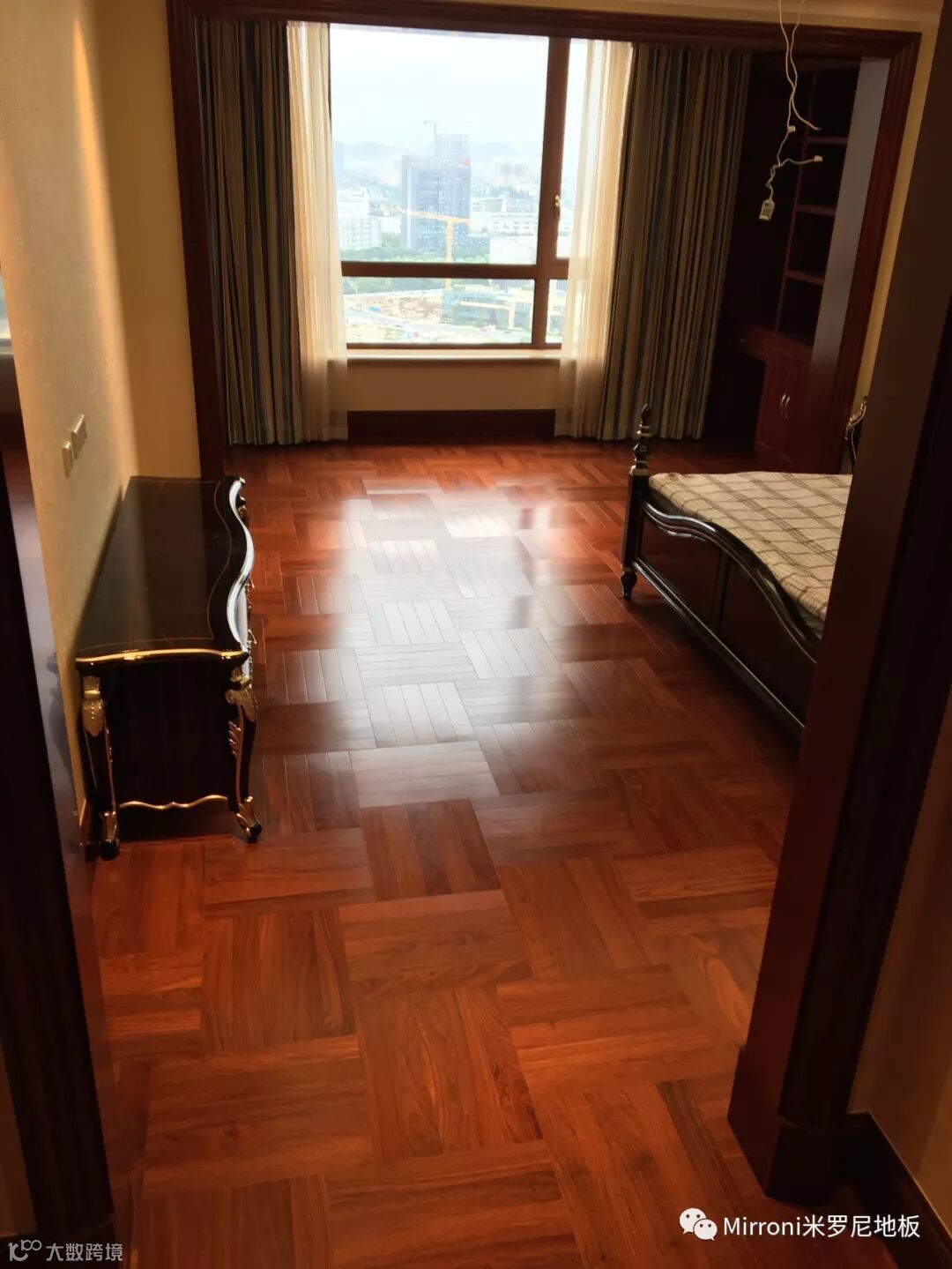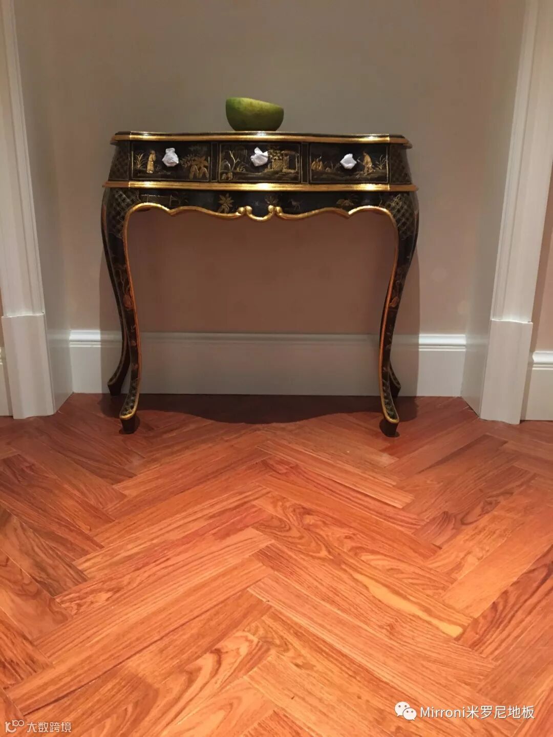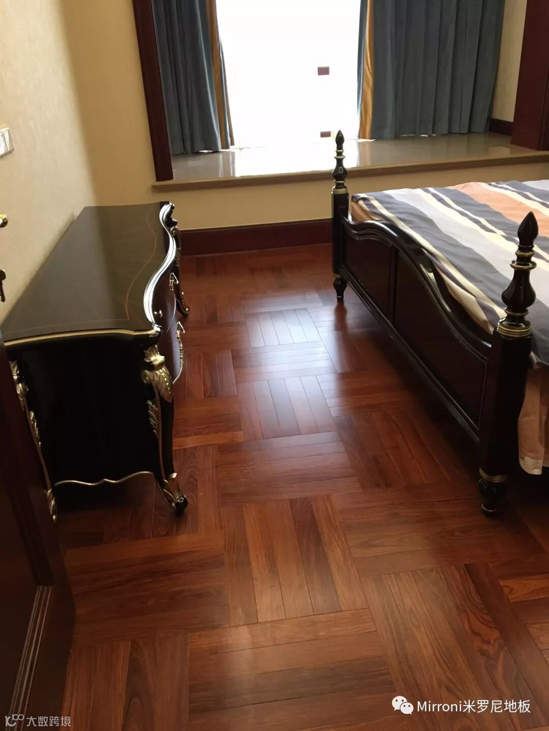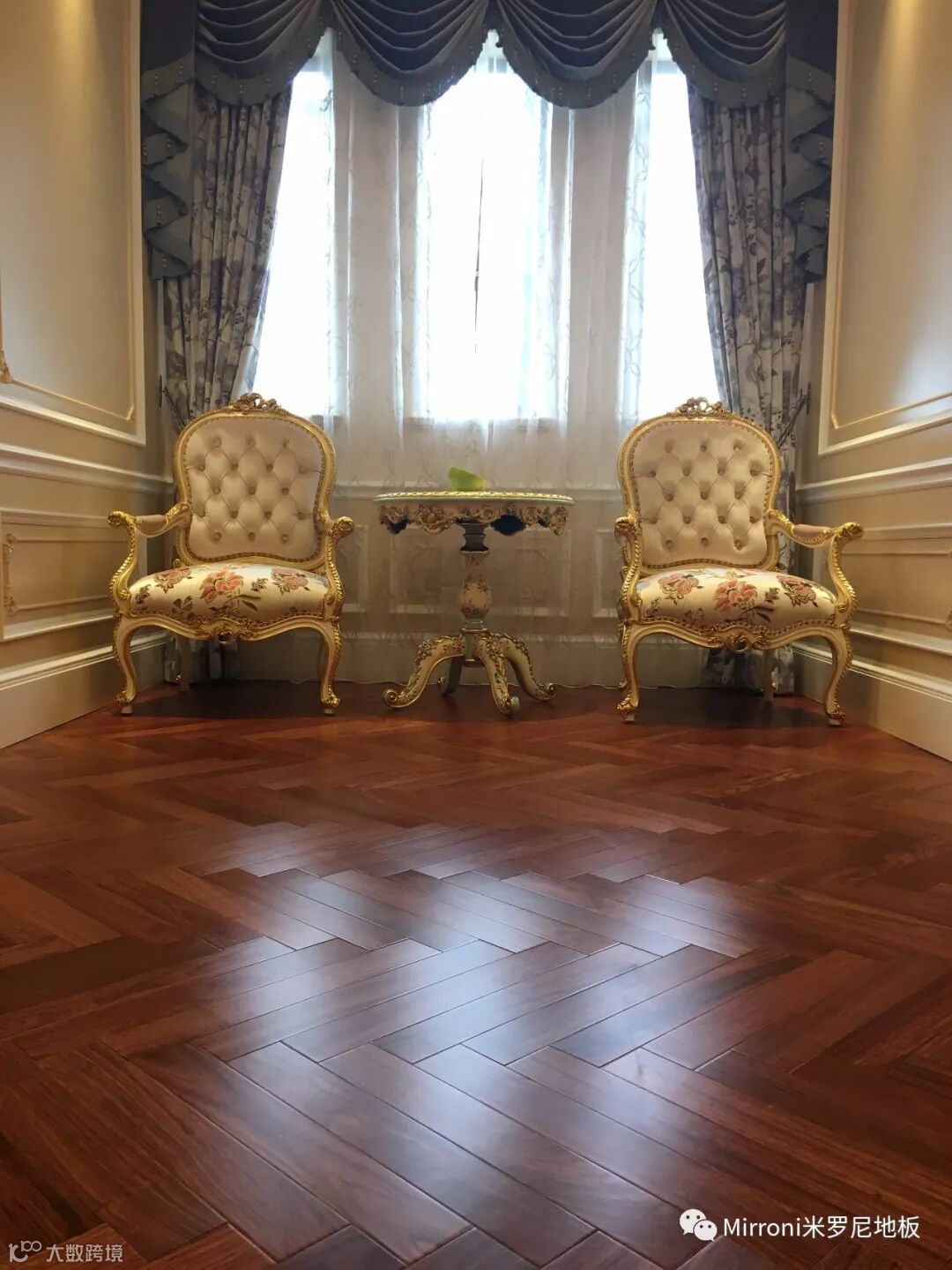 mirroni米罗尼亚花梨地板,经典人字拼的各种风格搭配,无论欧式、法式、美式、中式、还是新中式,都十分出彩。她的稳定的材质以及靓丽的纹理,都具有中国特有的元素,使家居生活环境,温馨、富贵、靓丽、典雅。