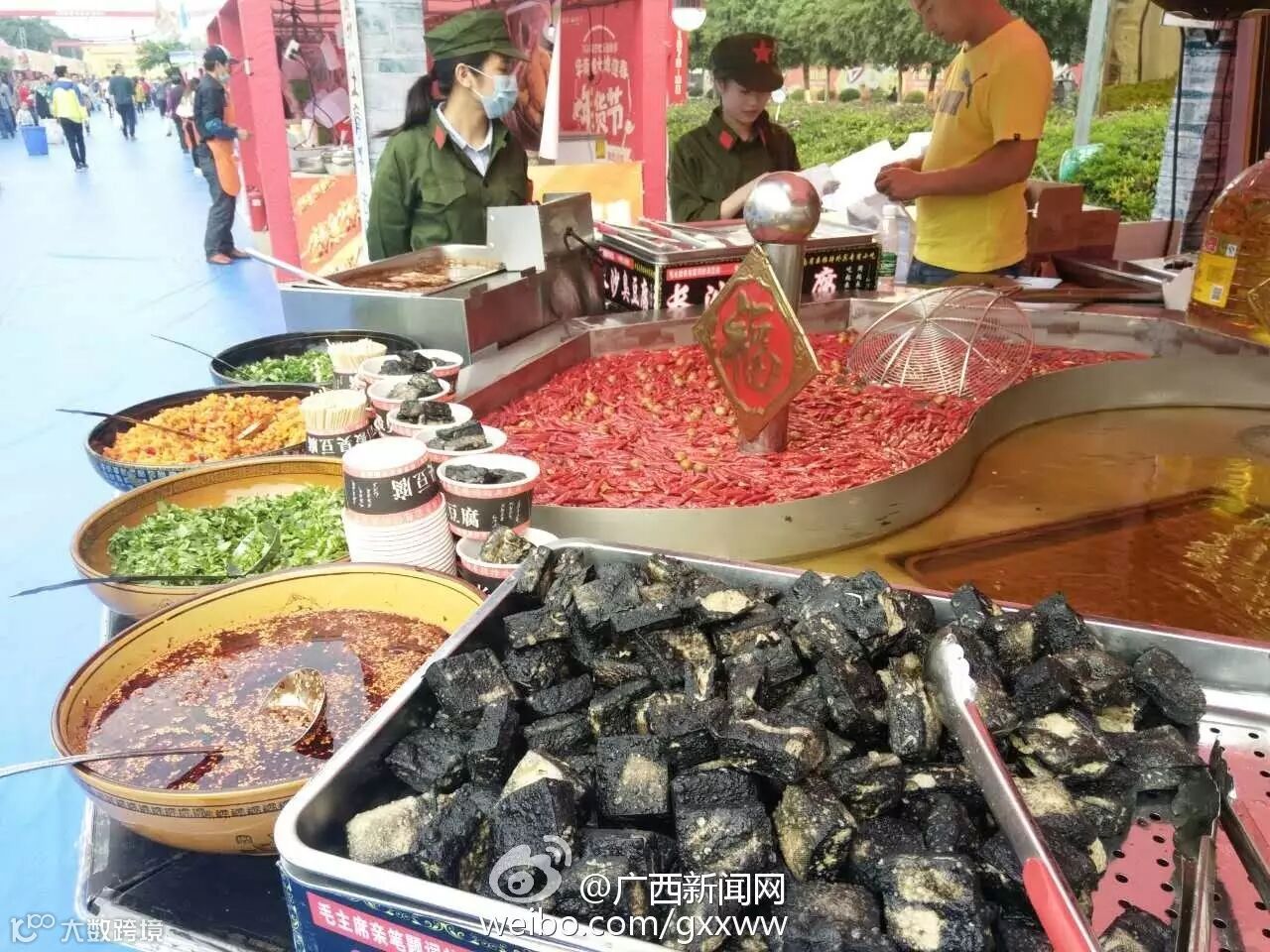1月7日,南宁华南城“大地迎春”年货节上汇聚各国美食,吃货们不要错过了。在年货节国际美食区里,韩国旋风薯塔、印度飞饼、越南鸡肉粉、泰国芒果、马拉西亚娘惹芙蓉虾等特色美食丰富而诱人。此外,我国的各地小吃一样也不少,四川的串串香、湖南的臭豆腐、内蒙的羊肉串……市民来逛年货节的同时,也能一饱口福。