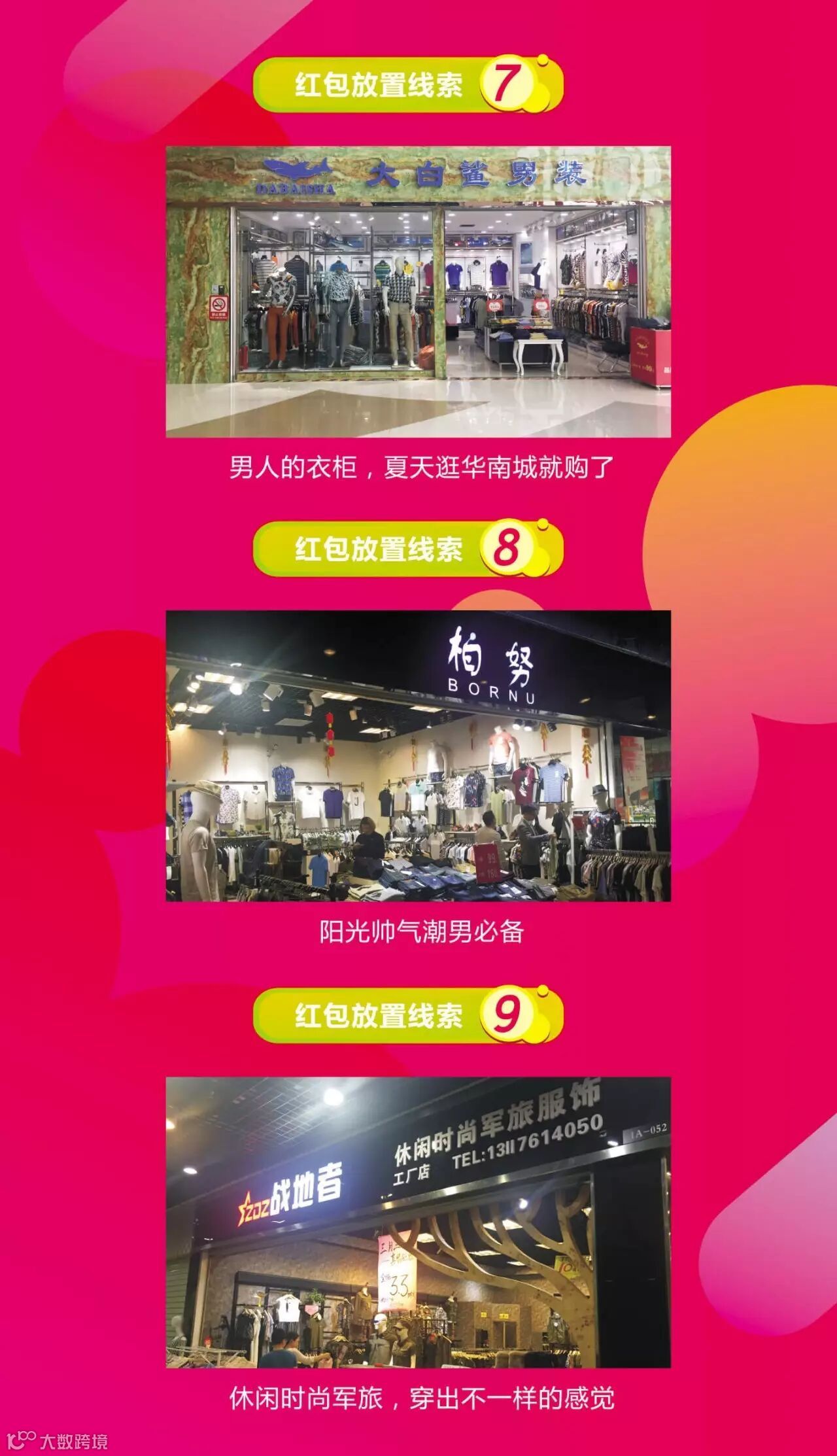找红包:来到华南城,打开手机支付宝,打开"扫一扫”→“AR”→“红包地图”→按提示寻找红包。