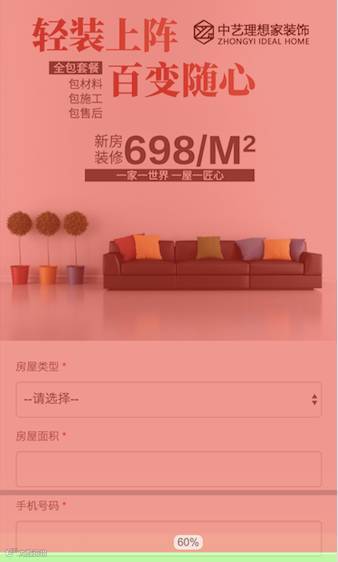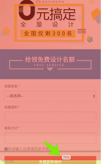 实验内容:筛选6位以表单为转化目标的广告主(以今日头条广告为例),其次筛选一个月内全国家装行业CVR中转化目标为表单TOP20的落地页来研究其层次布局,并且研究TOP20中在信息块上的共性特征,加入多位优化师的共性意见制作成三款PSD模版,套入被选广告主的原有素材,在原站点中各切25%流量,通过A/B test与广告主原有落地页进行对比,监测其表单转化数。