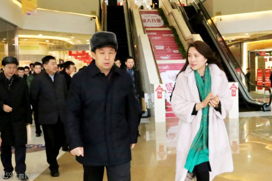 ▲哈尔滨华南城常务副总经理许洪霞(右一)向黑龙江省委副书记、省长陆昊(左一)介绍华盛奥特莱斯运营情况