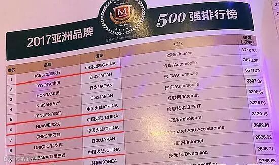 ▲亚洲品牌500强榜单