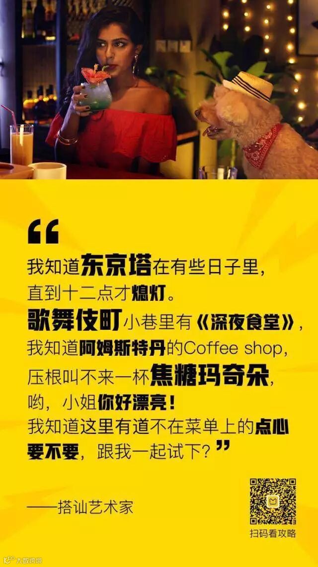 8种憨态可掬、活泼可爱的狗狗,恰好对应了8种不同的看世界的方式,而其背后更是传递出了“无论你是怎样的一种旅行者,都可以在蚂蜂窝上,找到属于自己的攻略和同好”的品牌诉求。创新的拟人化宣传方式,拉近了消费者与故事的距离,更让品牌的价值观在“润物细无声”中传递出去。