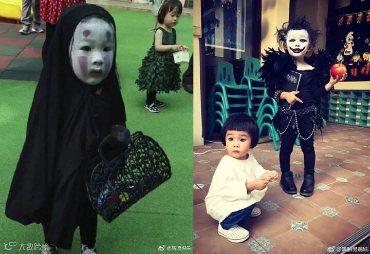 被妈妈装扮成无脸男的台湾小朋友吗?