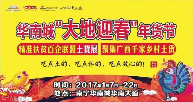 临近过年,一年一度购置年货的热浪也将来袭。由于2017年的春节将比以往来得都早些,还没做好跨入17年准备的友仔友女们,在“今年年货买什么””去哪才能买到好年货”的问题上必然是想破头脑。如果你仍在为不知道要上哪儿买年货而着急,干脆到2017年1月7到2016南宁欢乐消费季——华南城大地迎春年货节暨精准扶贫百企联盟土货展上看看都能买到什么好东东吧!
