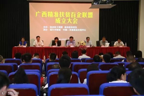 出席本次百企联盟成立大会的还有来自全区各行业积极参与精准扶贫的91家民营企业、8个商会的董事长或企业高管、商会负责人以及广西金融投资集团、农业银行、邮储银行等6家金融机构负责人。
