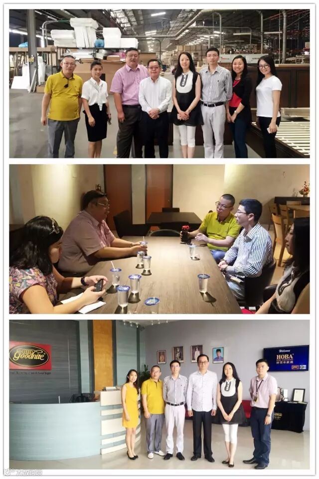 座谈会后,在马来西亚家具总会领导的带领下,筹备小组前往Luzini、Getha、Goodnite、Tawei Furniture、Hup Chong Furniture等重点家具企业实地考察,与企业负责人进一步交流沟通,并挑选产品。