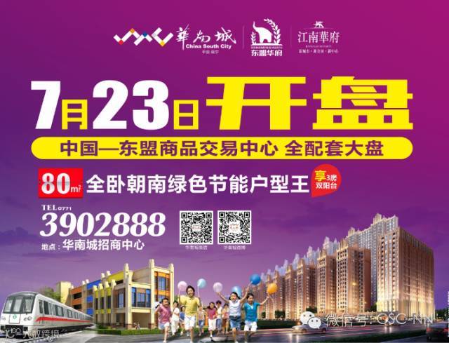 华南城-东盟华府,全卧朝南绿色节能户型王 ,致敬邕城给力奋斗士 ,包括江南小学在内的16所中小学环绕,实现“幼”有所教!价值高地,价格洼地!买到就是赚到, 7月23日盛大开盘! 详询:0771-3902888