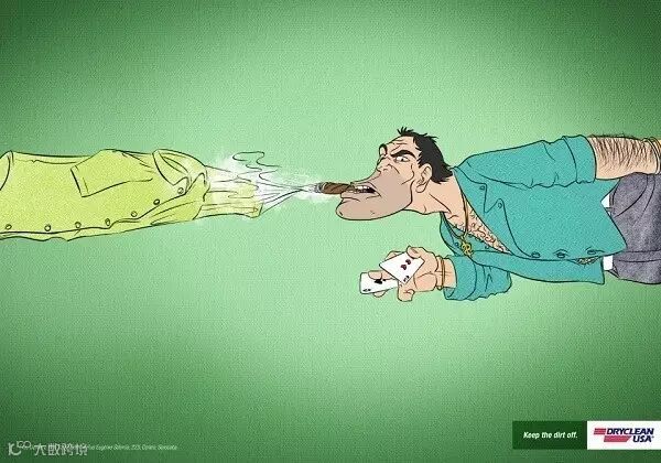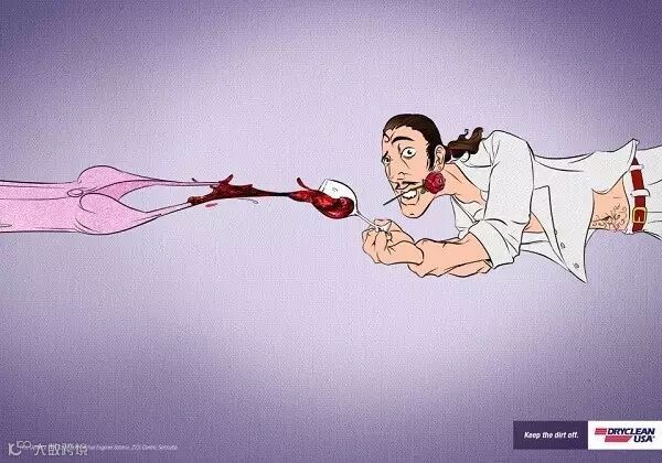 由巴西广告设计公司Dim’Canzian’Facci为圣保罗的一家干洗店设计的广告:一切统统甩掉。无论是什么污渍,这里都可以帮你统统甩掉,包括唇印、油渍和酒渍等让大家头疼的顽渍。夸张幽默的表现手法令人印象深刻。