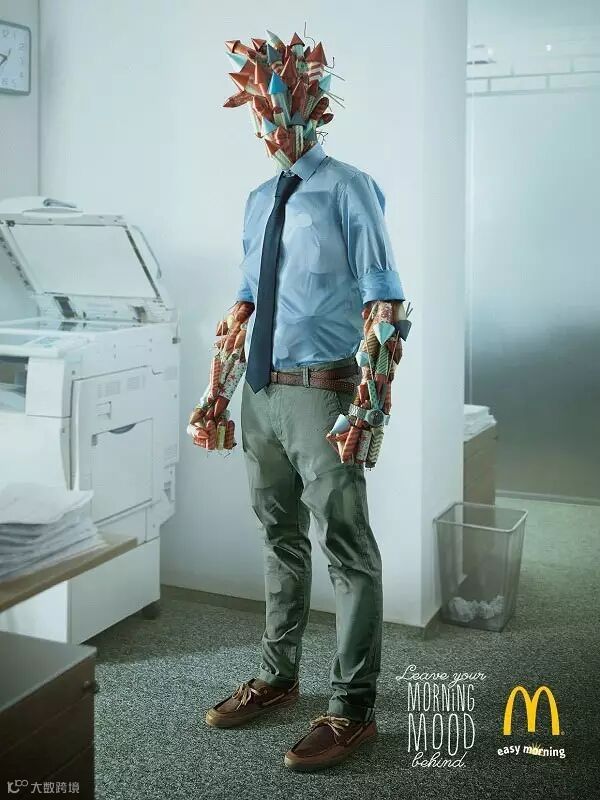 麦当劳(McDonald)早餐广告“Leave your morning mood behind”,大冬天离开被窝早起上班是不是觉得一包火,在地铁里想死的心都有了有没有,还没睡醒就上课是不是有气无力,赶紧来一顿麦当劳早餐。