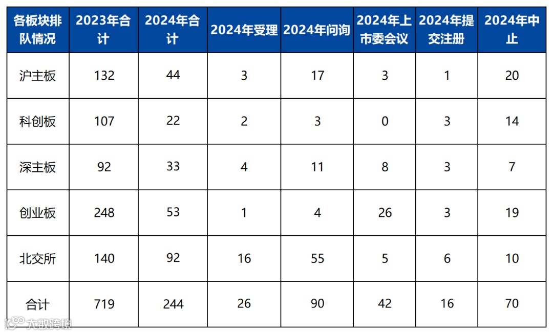 据交易所官网数据统计,截至2023年12月31日,A股IPO排队企业共计719家,截至2024年12月31日,A股IPO排队企业共计244家,下降了66%。