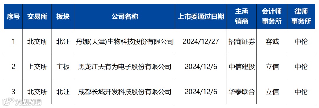 2024年12月IPO上市委会议通过企业信息明细