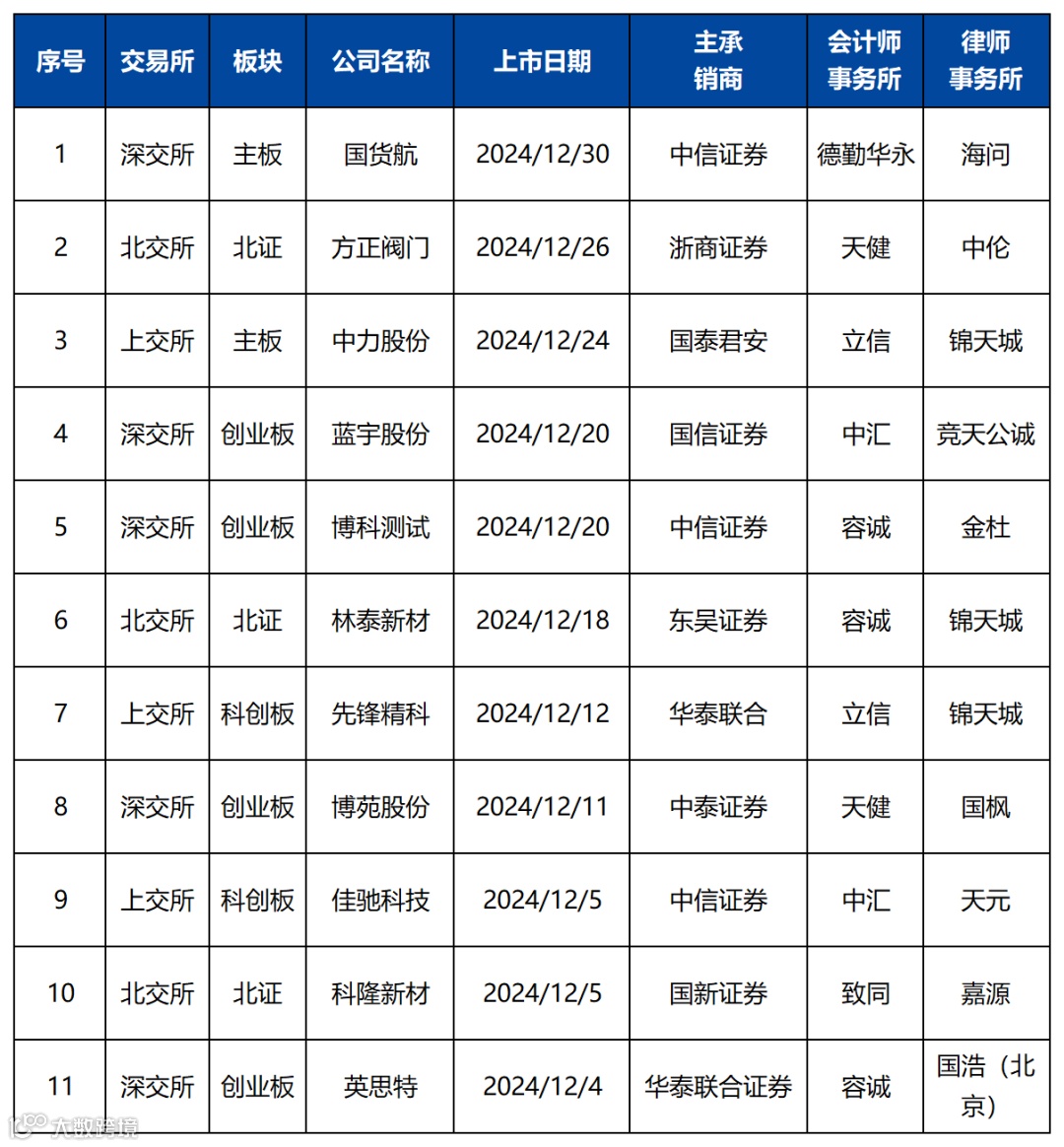 2024年12月IPO上市企业信息明细
