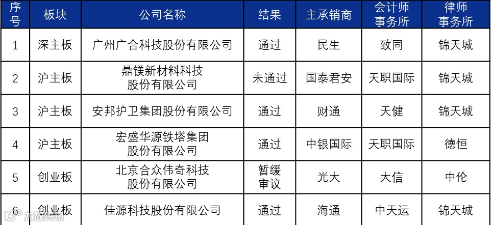 7月3日-7月9日,发审委首发上会6家,通过4家,暂缓审议1家,未通过1家。