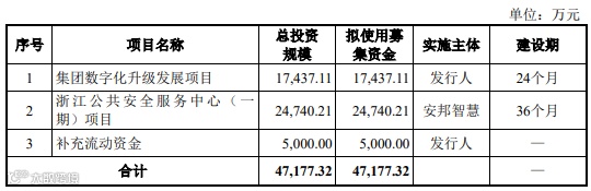 本次发行前,公司总股本为8,064.5161万股。本次拟公开发行不超过2,688.17万股且占发行后公司股份总数不低于25%,本次发行不安排股东公开发售股份。此次IPO拟募集4.72亿元,用于集团数字化升级发展项目、浙江公共安全服务中心(一期)项目、补充流动资金。