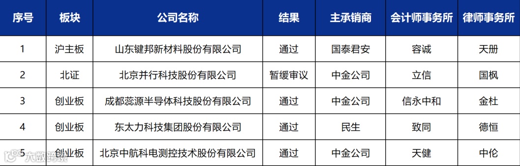 8月7日-8月13日,发审委首发上会5家,通过4家,暂缓审议1家。
